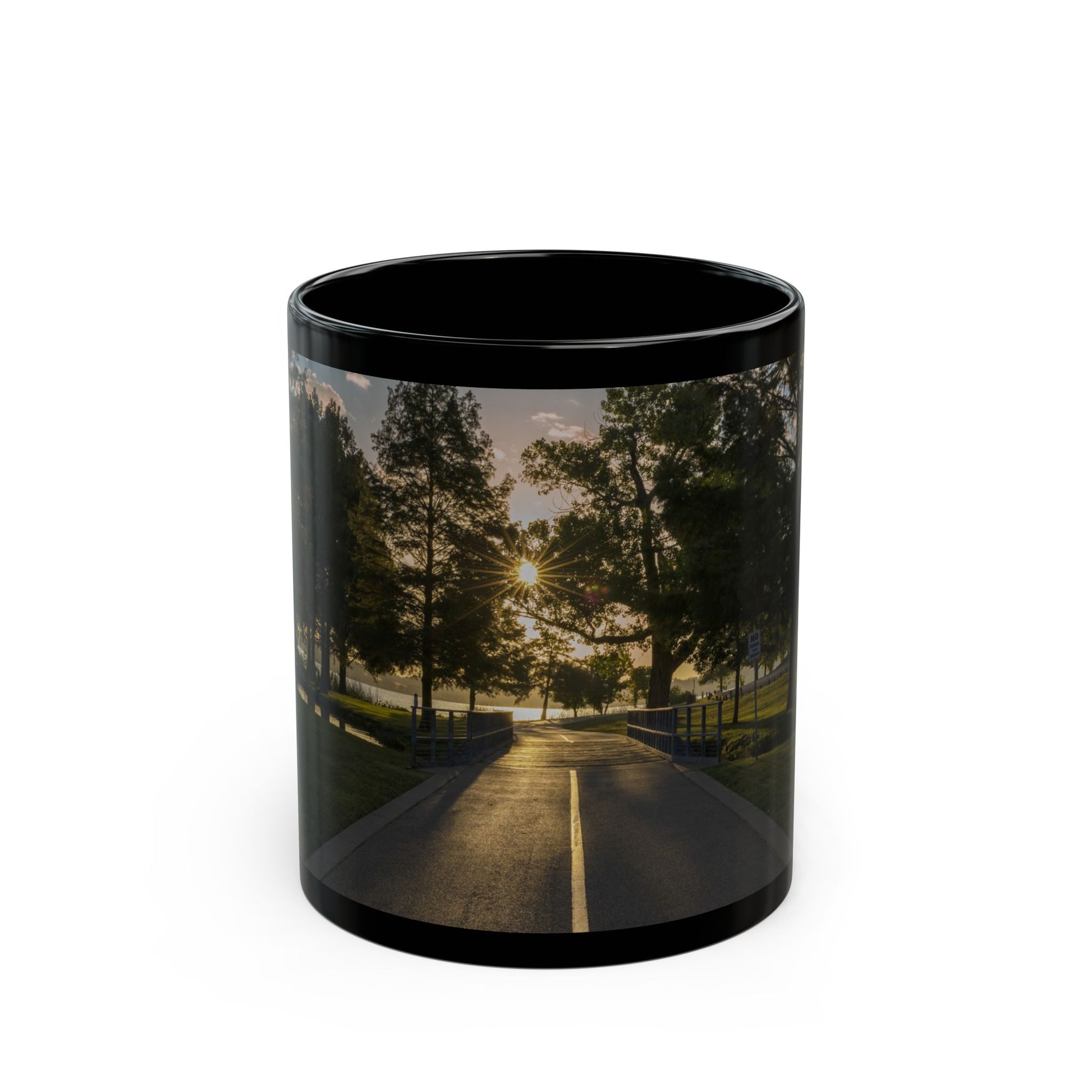 Black Coffee Mug (11oz, 15oz) -- White Rock Sunrise on the Path