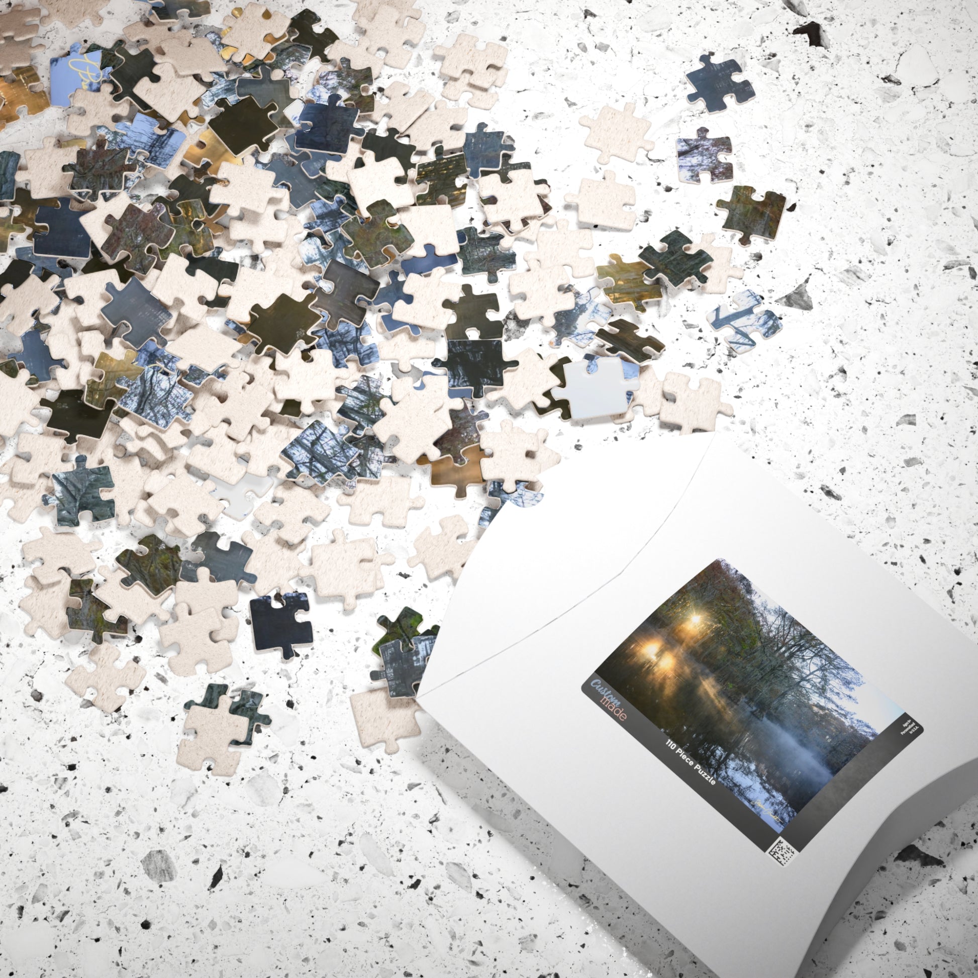 Morning light folds through bald cypress and drifts across glassy water. This puzzle captures that hush — a burnished sunrise pressing through trees while a delicate mist clings to Caddo Lake. Piece by piece you’ll find pockets of glowing orange, shadowed trunks, and soft bands of fog that invite slow focus and quiet satisfaction. It’s the kind of image that rewards patience: small discoveries—reflections, reeds, a break in the canopy—appear as the scene comes together. Lay it out on a table, brew something warm, and let the lake morning settle in the room.