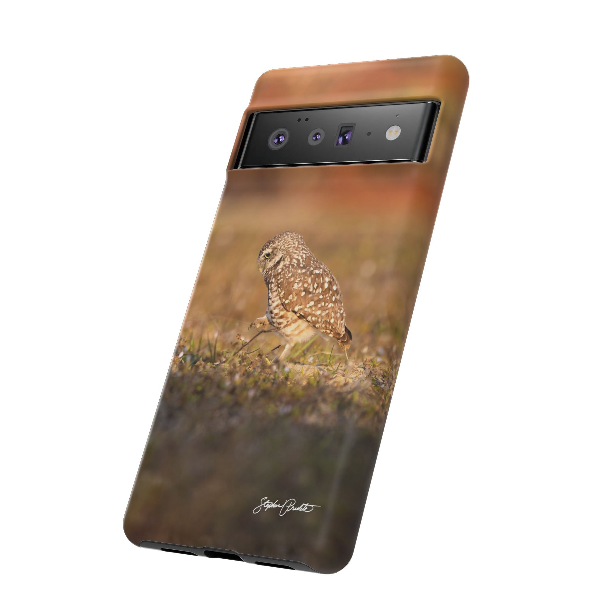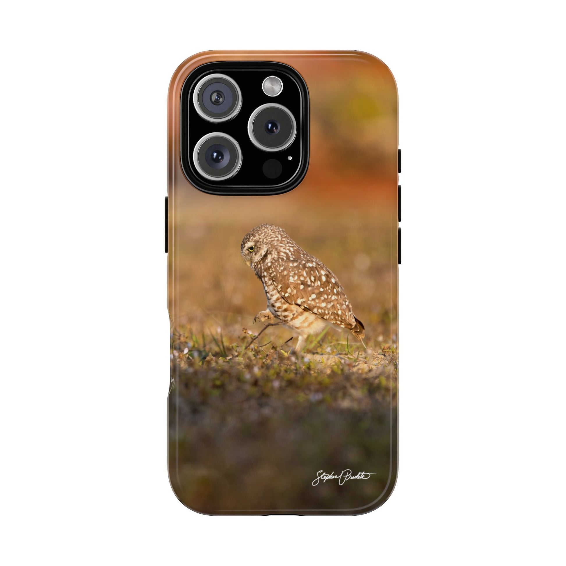 Tough phone case depicting a wise-looking Burrowing Owl out for a stroll near his burrow. This phone case exudes durability and protection, perfect for those who are wise enough (like the owl) to keep their phone safe without compromising style. Ideal for animal lovers, nature enthusiasts, and people who also like to walk. Great for birthdays, holidays, and everyday use.