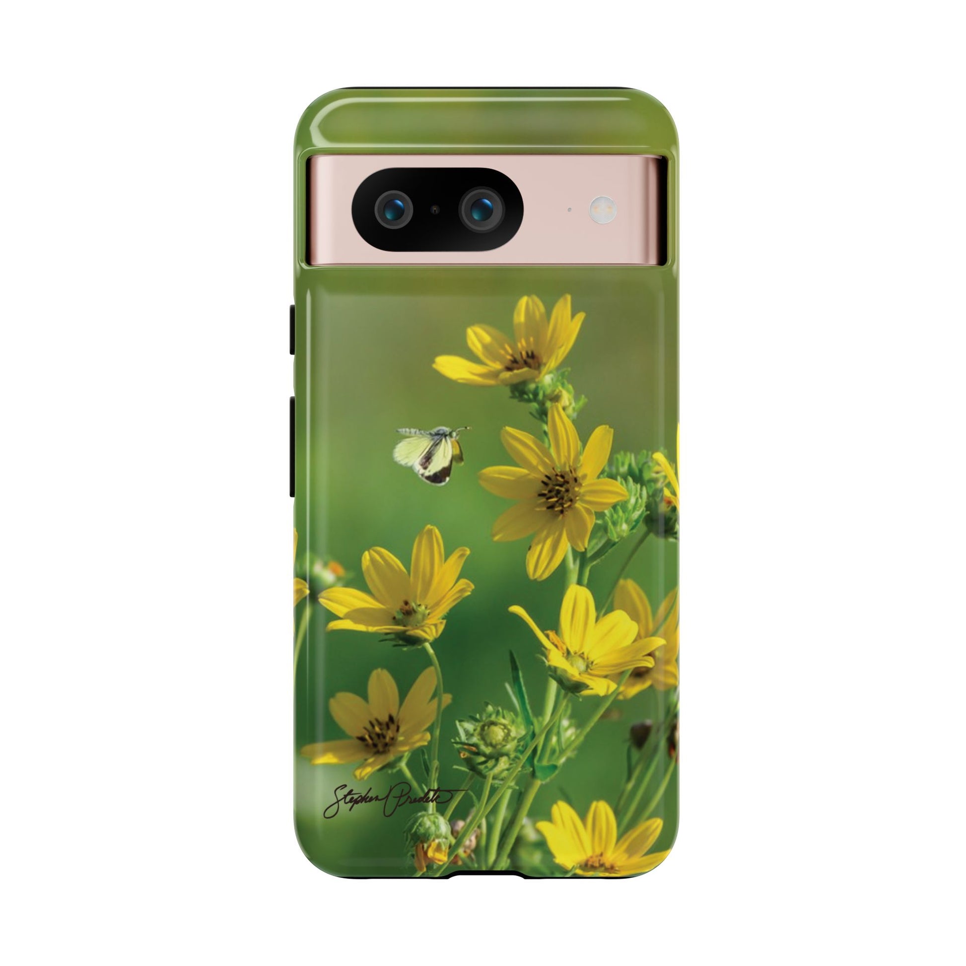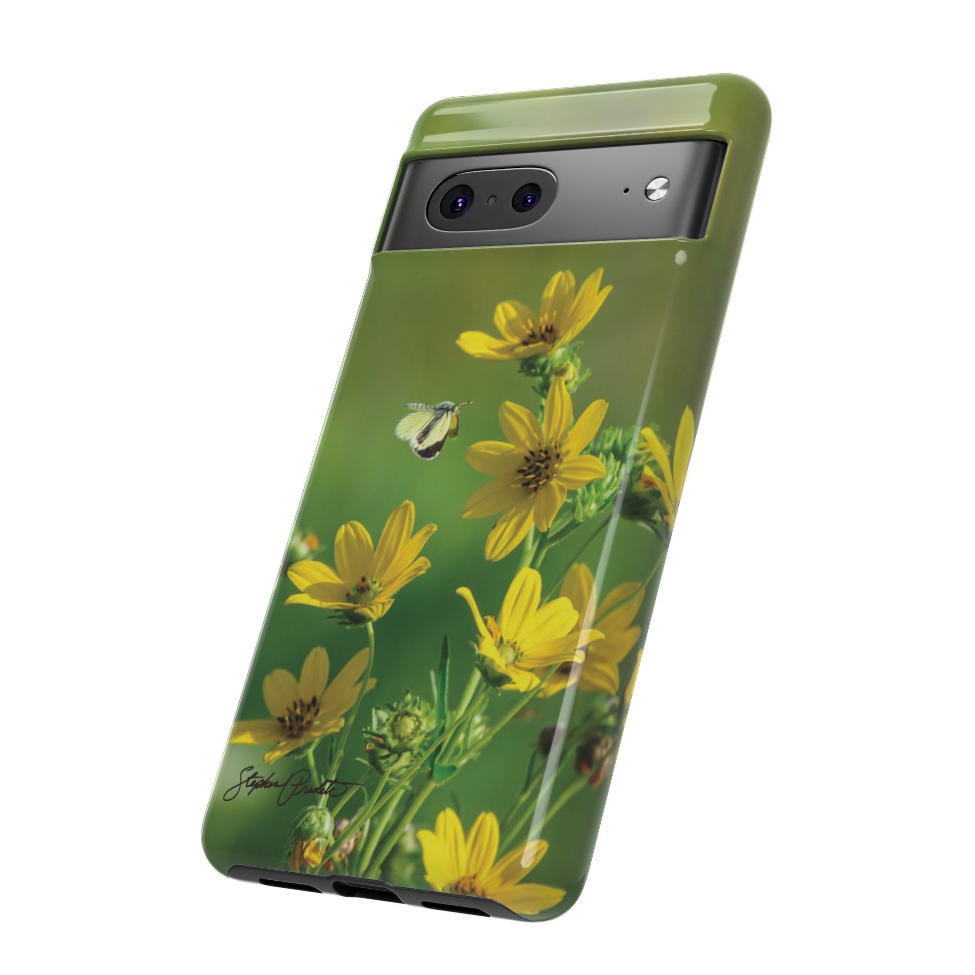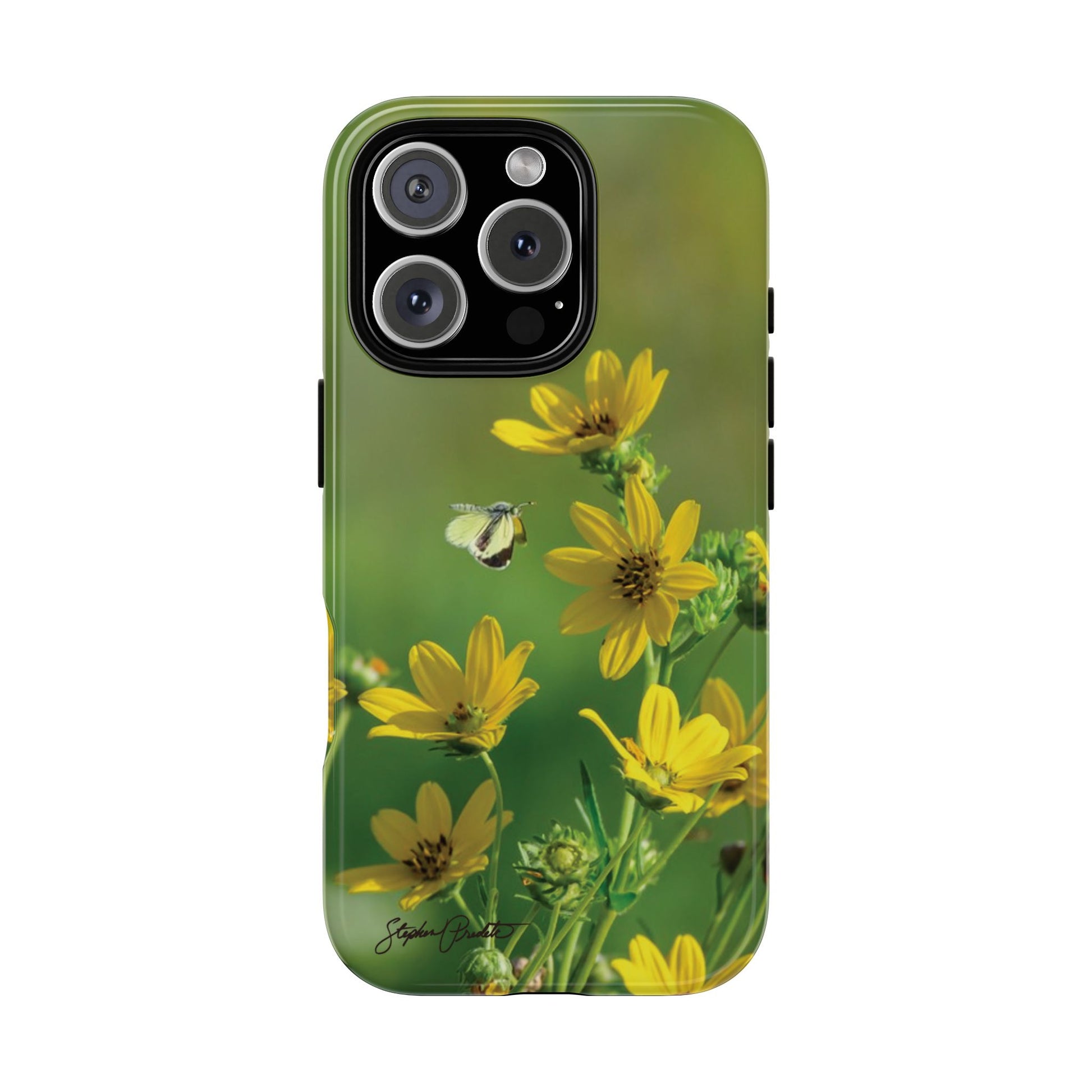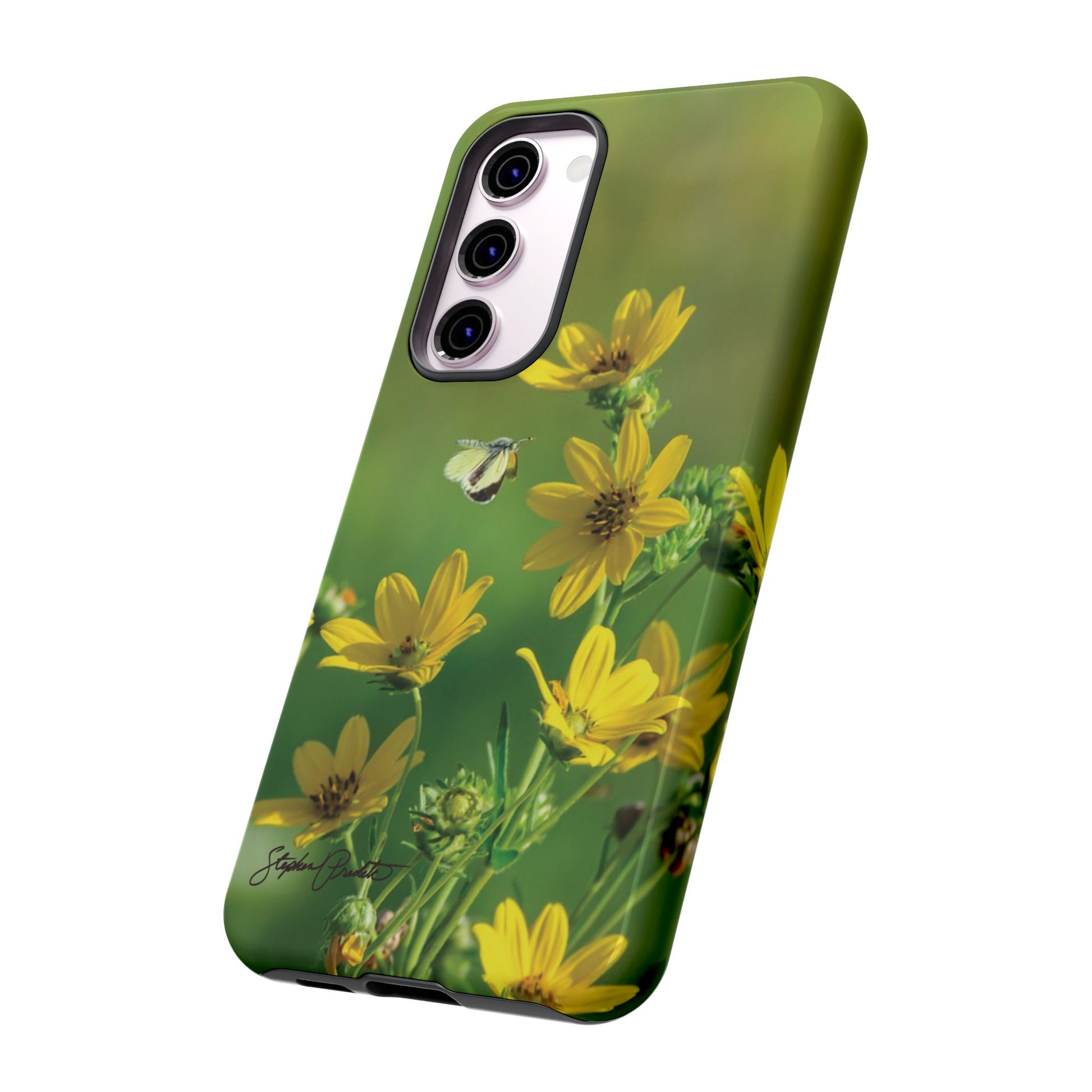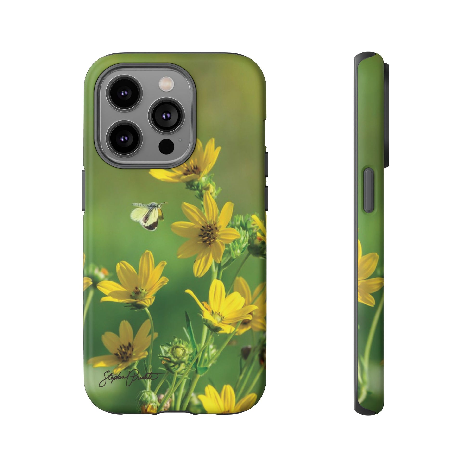 Dainty butterfly. Tough case. This durable and impact resistant phone case features a photo of the Dainty Sulphur Butterfly, North America's smallest yellow butterfly. Perfect for nature lovers and those who appreciate unique designs. Ideal for protecting your phone while adding a touch of style. Great for gift-giving during birthdays, holidays, or any special occasion. Instead of giving flowers, give a butterfly with flowers PLUS the security of phone protection--all in one case!
