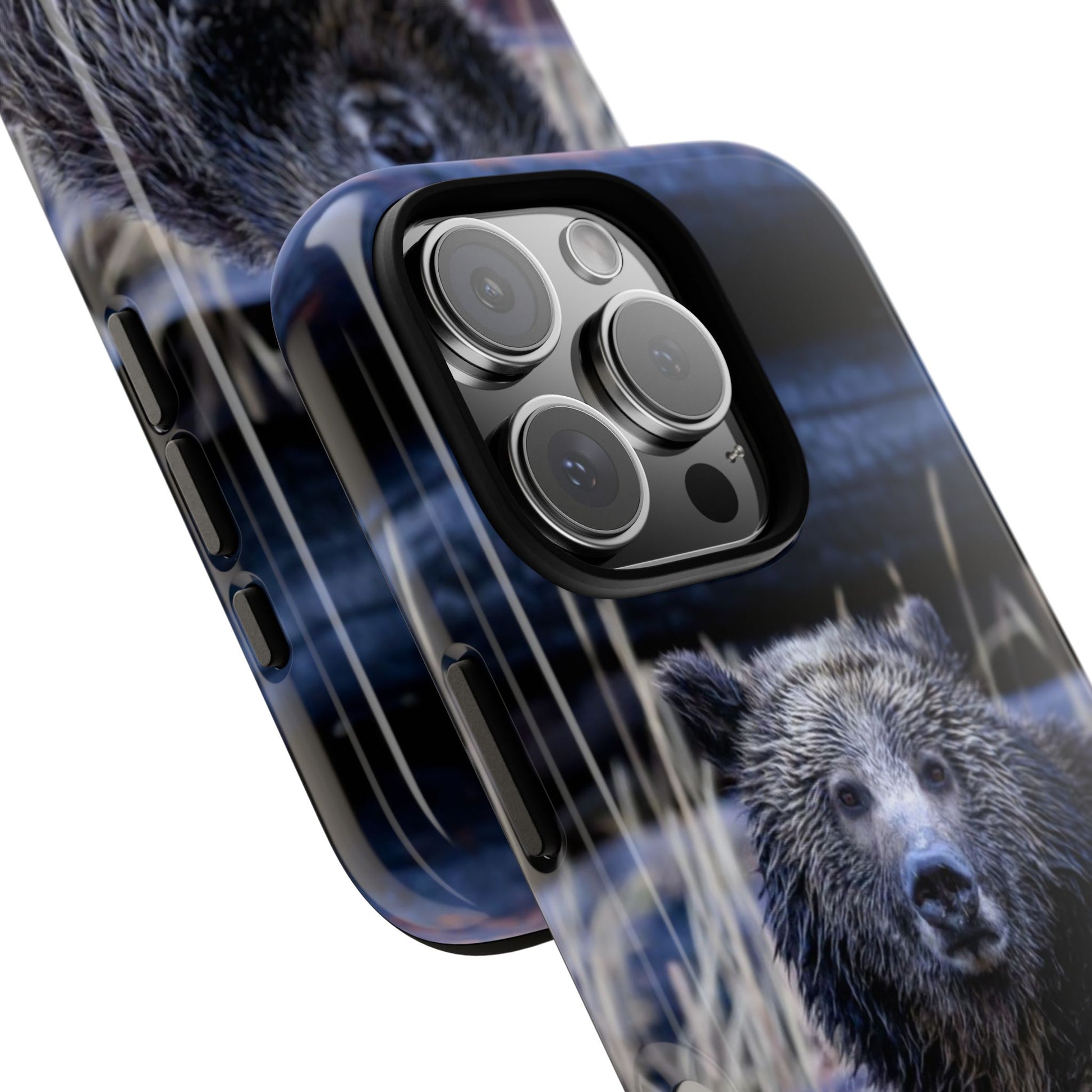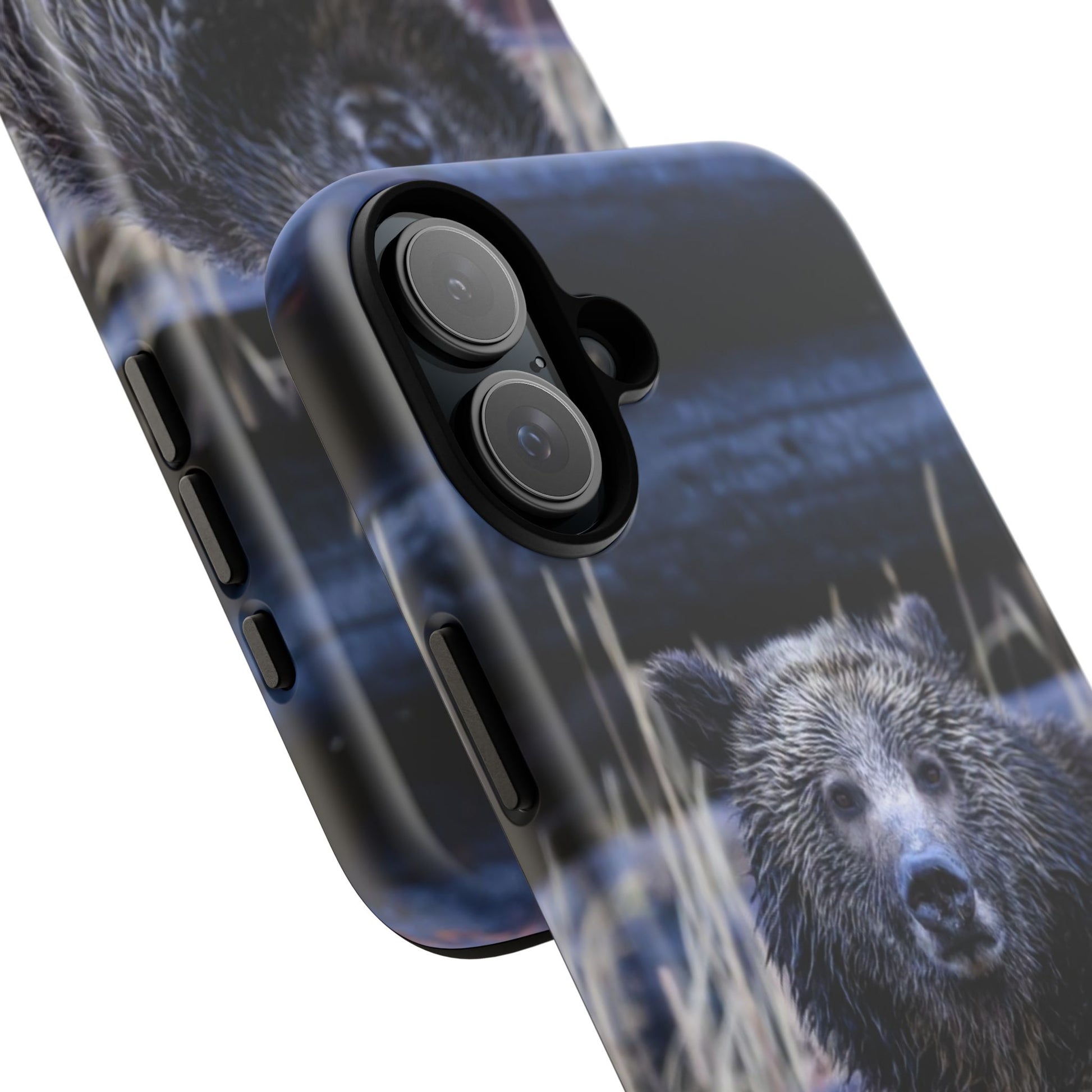 Rugged and sturdy Tough Phone Case featuring Stephen's photo of a Grizzly Bear making eye contact. Perfect for those who want both style and protection for their phone. Ideal for outdoor enthusiasts, animal lovers, and those who appreciate wildlife. Great for gifting on birthdays, Father's Day, and Christmas.