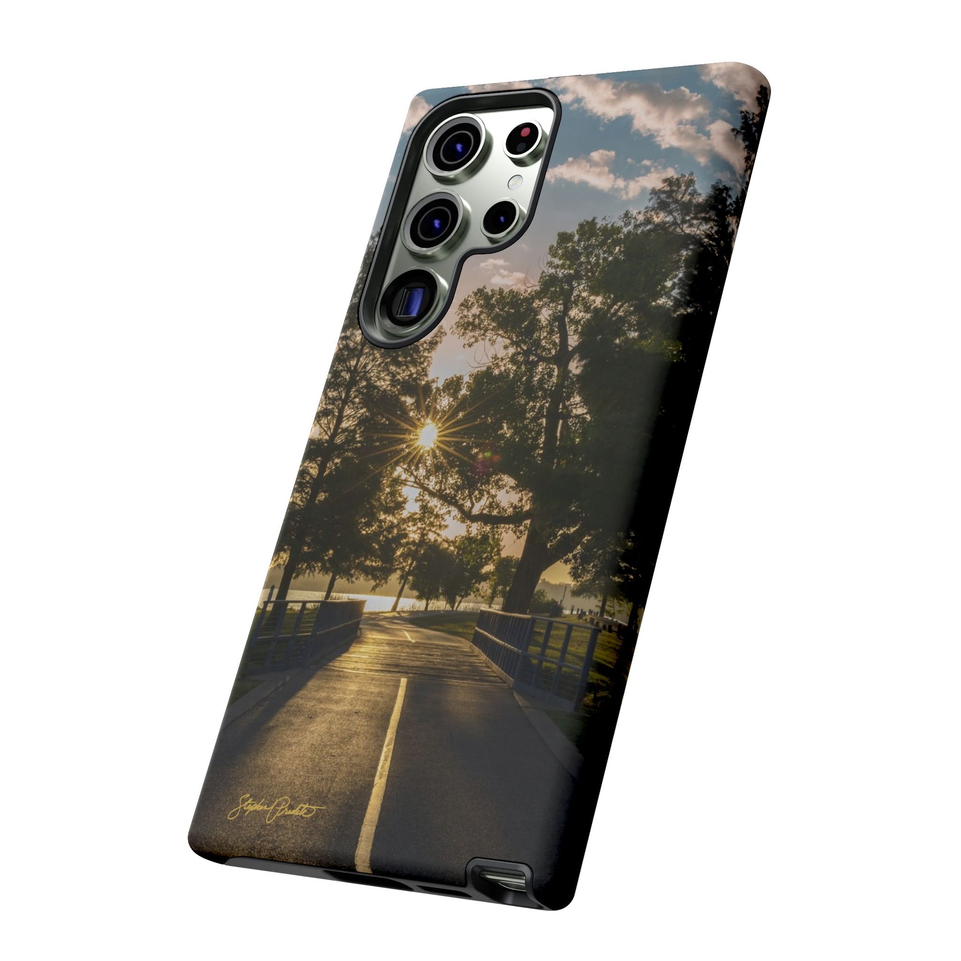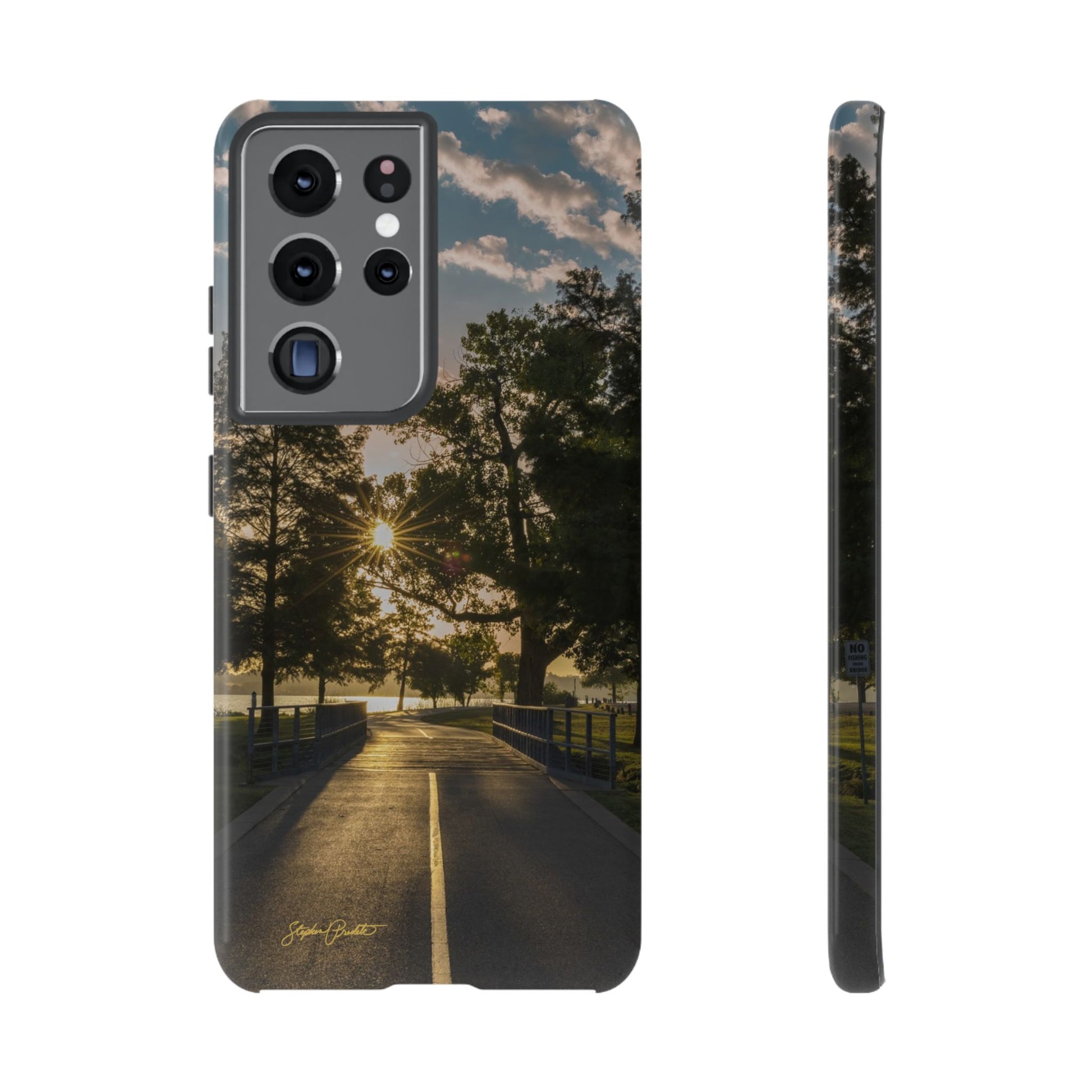 Protect your phone in style with this Phone Tough Case featuring Stephen's photo of a beautiful sunrise on the running path at White Rock Lake in Dallas, TX. The durable and impact resistant materials provide excellent shock absorption, making it perfect for outdoor adventures. Ideal for active individuals who enjoy running or nature walks. Great gift for runners, nature lovers, outdoor enthusiasts, and people who are fond of the sun coming up each day! Perfect for birthdays, holidays, or as a thoughtful gift for any occasion.