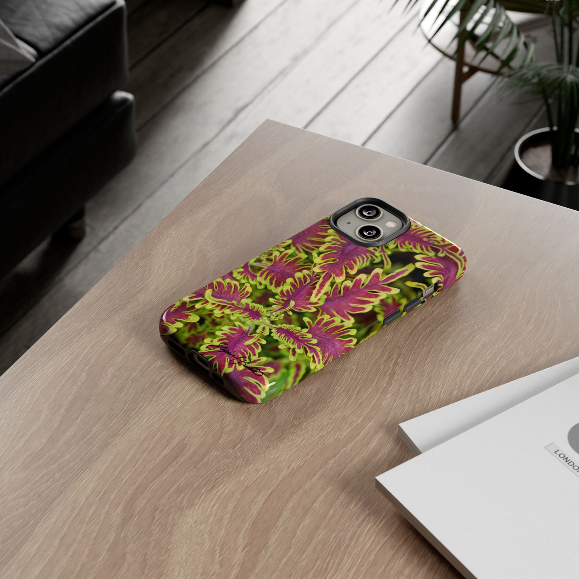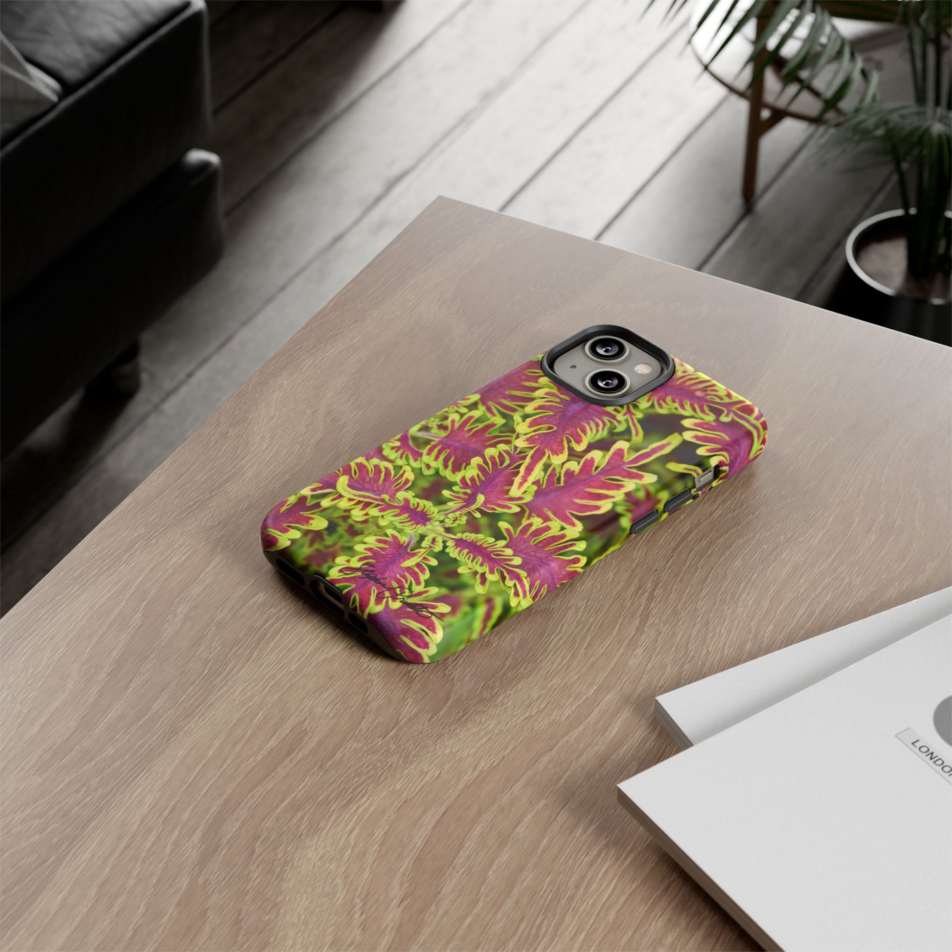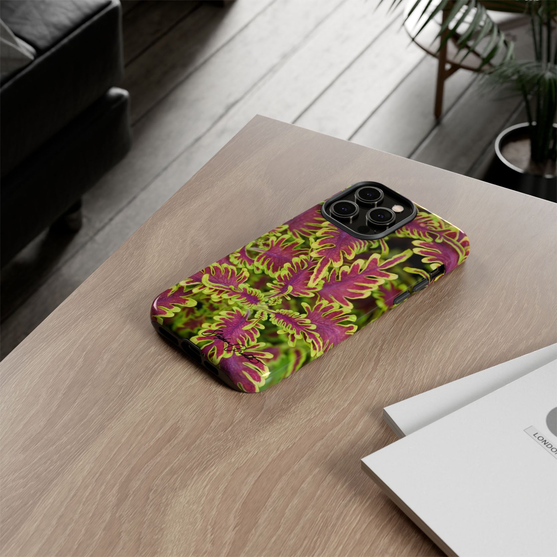 Phone Tough Case — Vibrant Variegated Botanical Design with Coleus Leaves